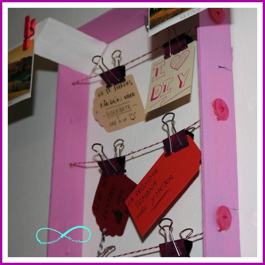Ayer se me encendió la bombilla y se me ocurrió hacer un marco para colgar notas, cosas que necesito ver con un golpe de vista, que sean importantes y no tenga que abrir la agenda.