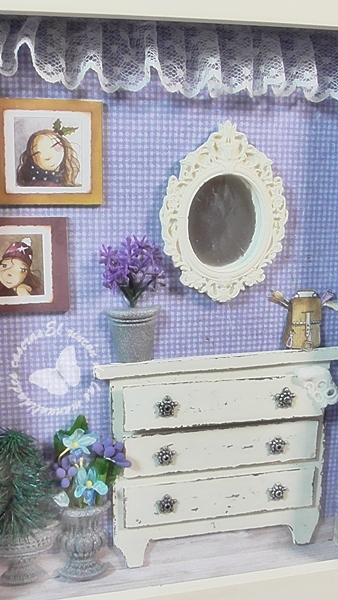Mi intención era poder decorarlo con cosas que tenia ya por casa, reutilizar cartón, papeles, flores, puntillas etc... e incluso el marco que ya tiene sus añitos.
