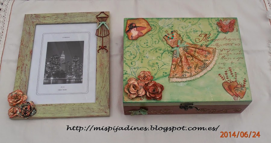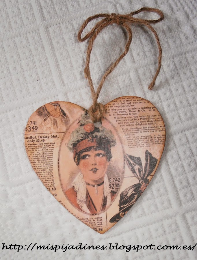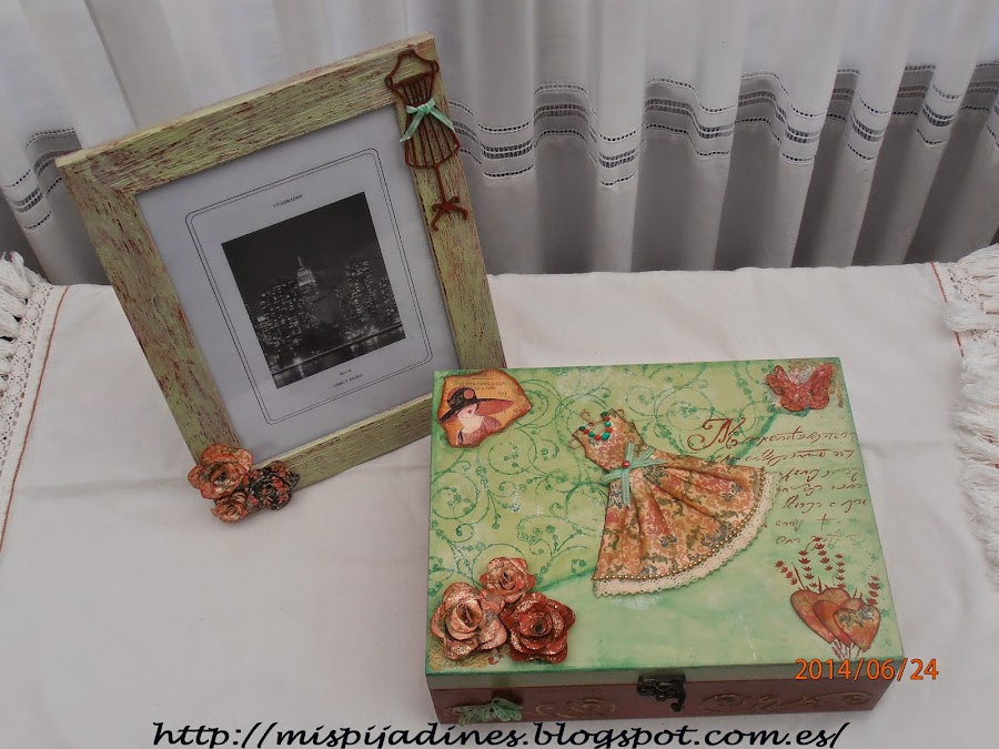 Un corazón de cartón forrado con los mismos papeles de la caja y marco...
