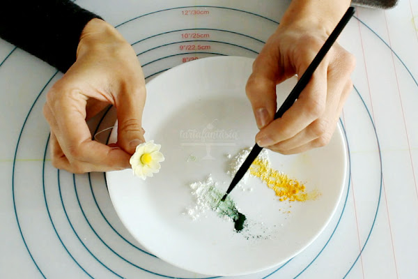 Para el secado de las flores he usado, como cuando hice las hortensias, una cubitera de silicona, sí... lo que utilizamos para hacer cubitos de hielo, son muy útiles para hacer flores de azúcar.