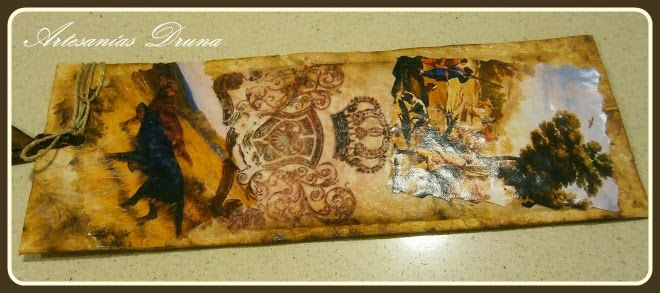 Esta cajita de madera me la consiguió mi querida Mar, y se fue para mi querida Mamen. Está realizada con acrílicas, entelada con doble faz y stencil.También va decorada con tela de arpillería barnizad ...