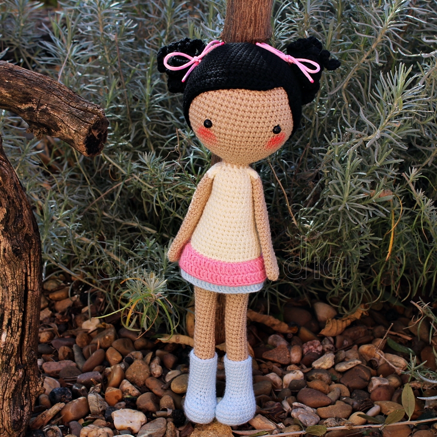 Y el patrón elegido para estrenarme con estos muñecos ha sido el de Marina, una simpática niña con coletas, vestida con vestidito y botas.