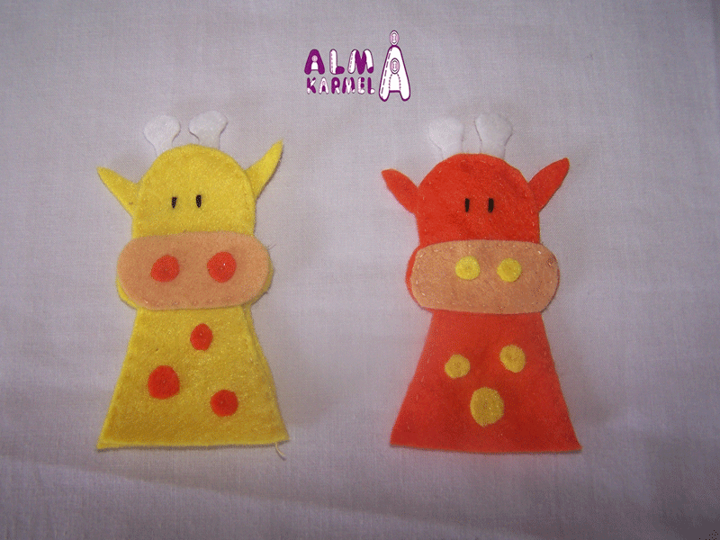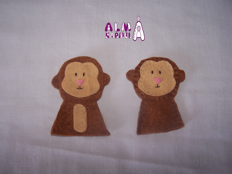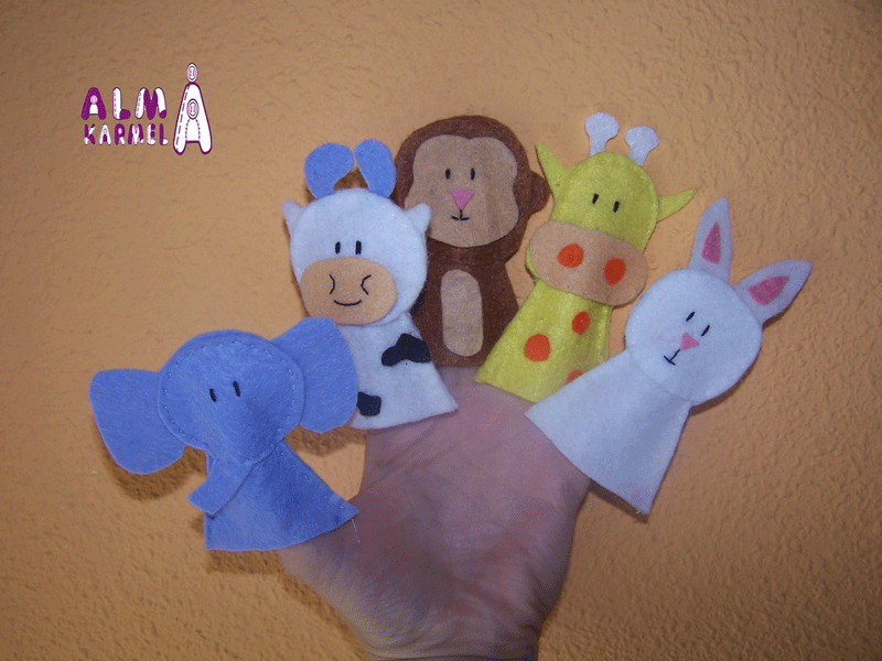 Además que una ya estaba cansada de tanta blancanieves, príncipe, enanito y bruja....asi que me puse a hacer marionetas pero de dedo, mucho más fáciles de usar y como en casa gustan tanto los animales, la primera colección es esta: "Animalitos"