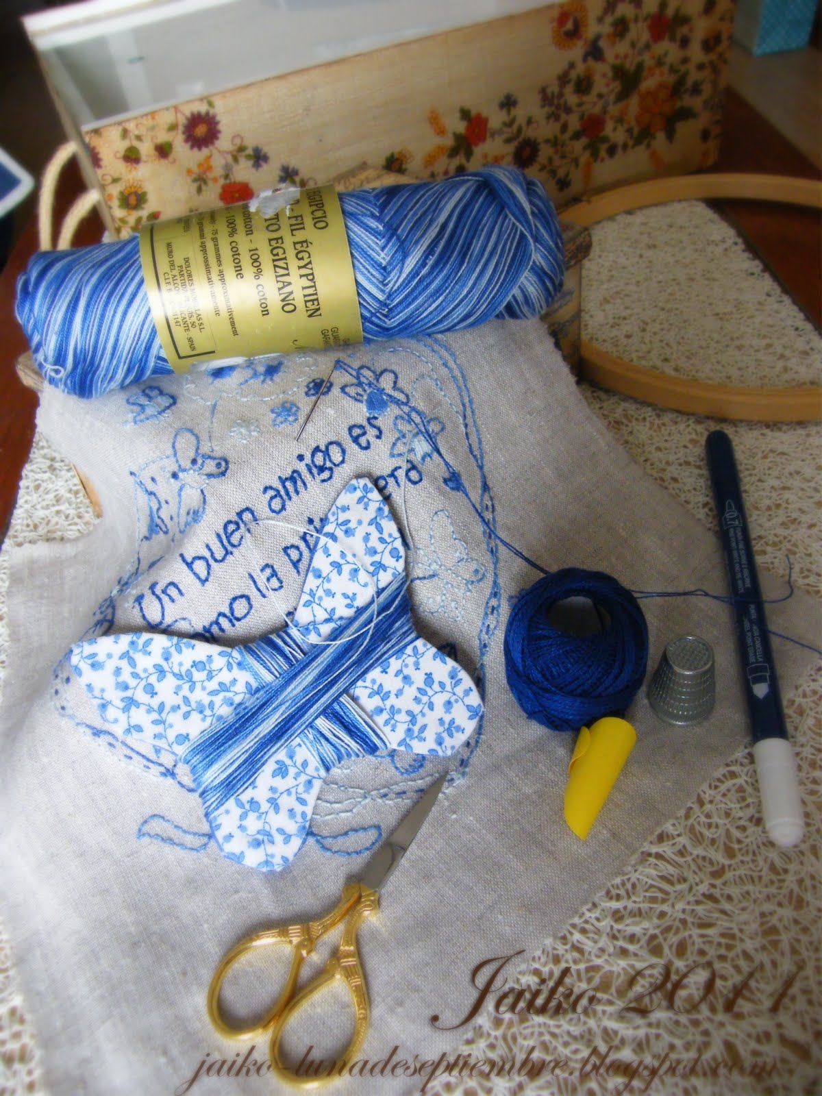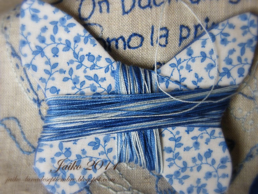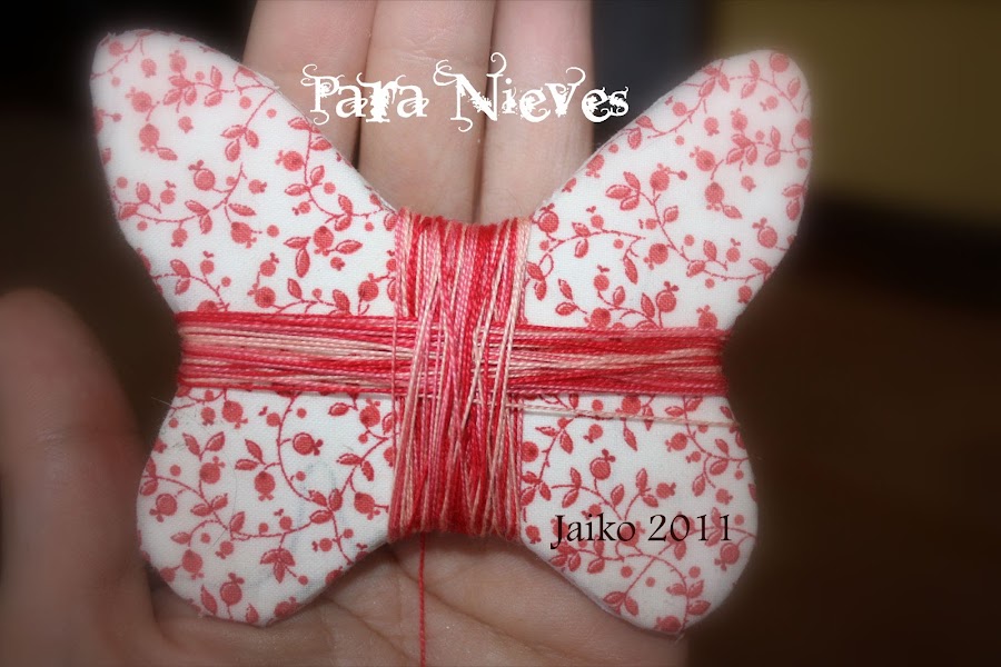Hace un tiempo vi este tipo de accesorio para bordar, eran de otro material, de madreperla, y como lo que me gustó fue la idea pensé a ver con que podía hacerme una de estas mariposas para devanar la madeja con la que estoy bordando.. y dije... lijero pero rígido.. y que quede mono..?? pues cartonaje, y... manos a la obra!!