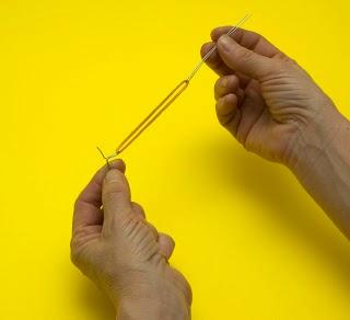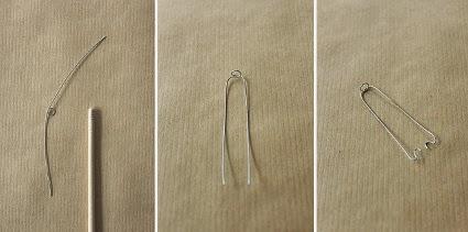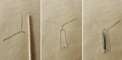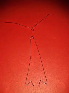Cortar un alambre de unos 14 cm de largo y doblar como se muestra en la fotografía con ayuda de las pinzas redondas.