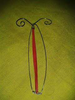 Haremos las antenas.Encontrar el centro del cable más corto (unos 11 cm) y envolver alrededor de la base del pincel. En vez de formar un bucle, pellizcar el alambre para formar un círculo, doblar las colas del alambre para formar la base de las alas.