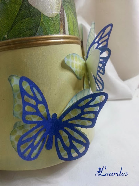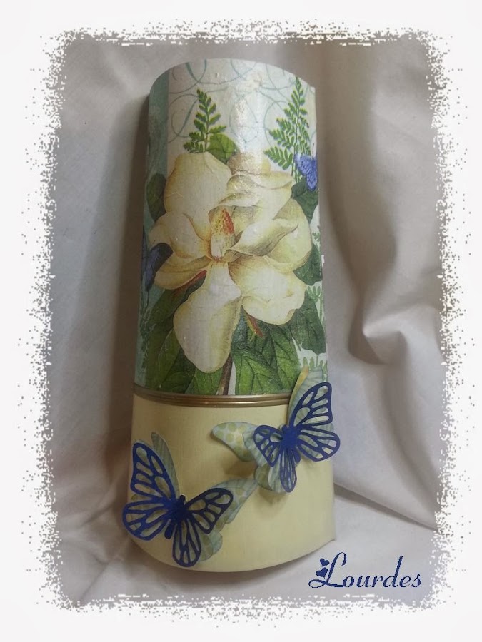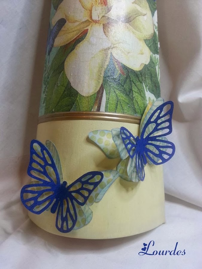 Teja decorada en decoupage con servilleta,plomo adhesivo en oro y mariposas scrap realizadas con tres papeles diferentes