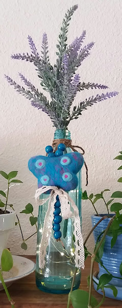 La primavera se va haciendo notar, las primeras flores ya han germinado y como no podía ser de otra manera las mariposas, de lana afieltrada,pululan ya entre ellas, os enseño una que andaba entre mis plantas ??? ...