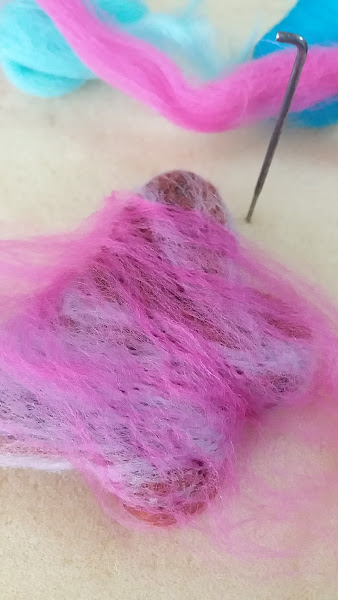 Esta mariposa es bastante grande , tiene un grosor de dos centímetros , así que para no gastar demasiada lana he realizado el cuerpo de la mariposa con restos de lana de otros trabajos , aquí no se tira nada jajajajaja!. Después de tener su cuerpo hecho, la decoro en los colores que me gustan.