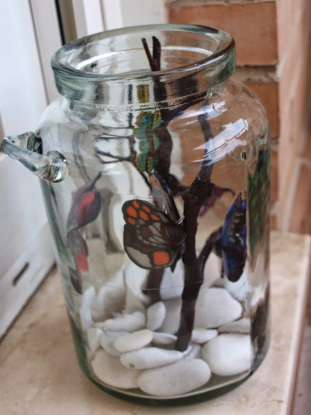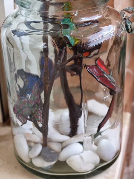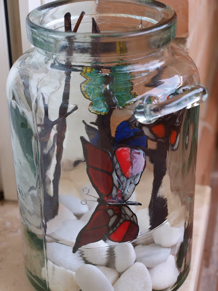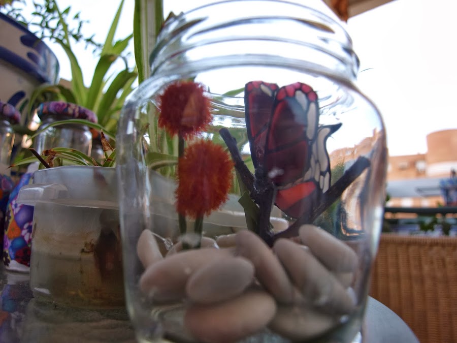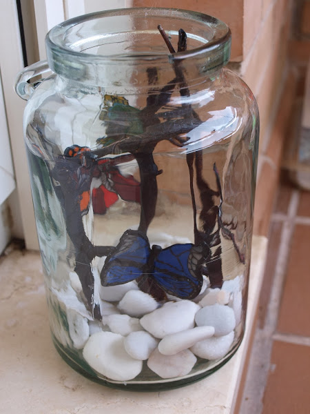 Esta mañana salí a pasear y atrapé unas mariposas muy especiales y únicas en su especie....Y que mejor que compartirlas con vosotros/as. Fijaros que buenas que son que no se salen del tarro