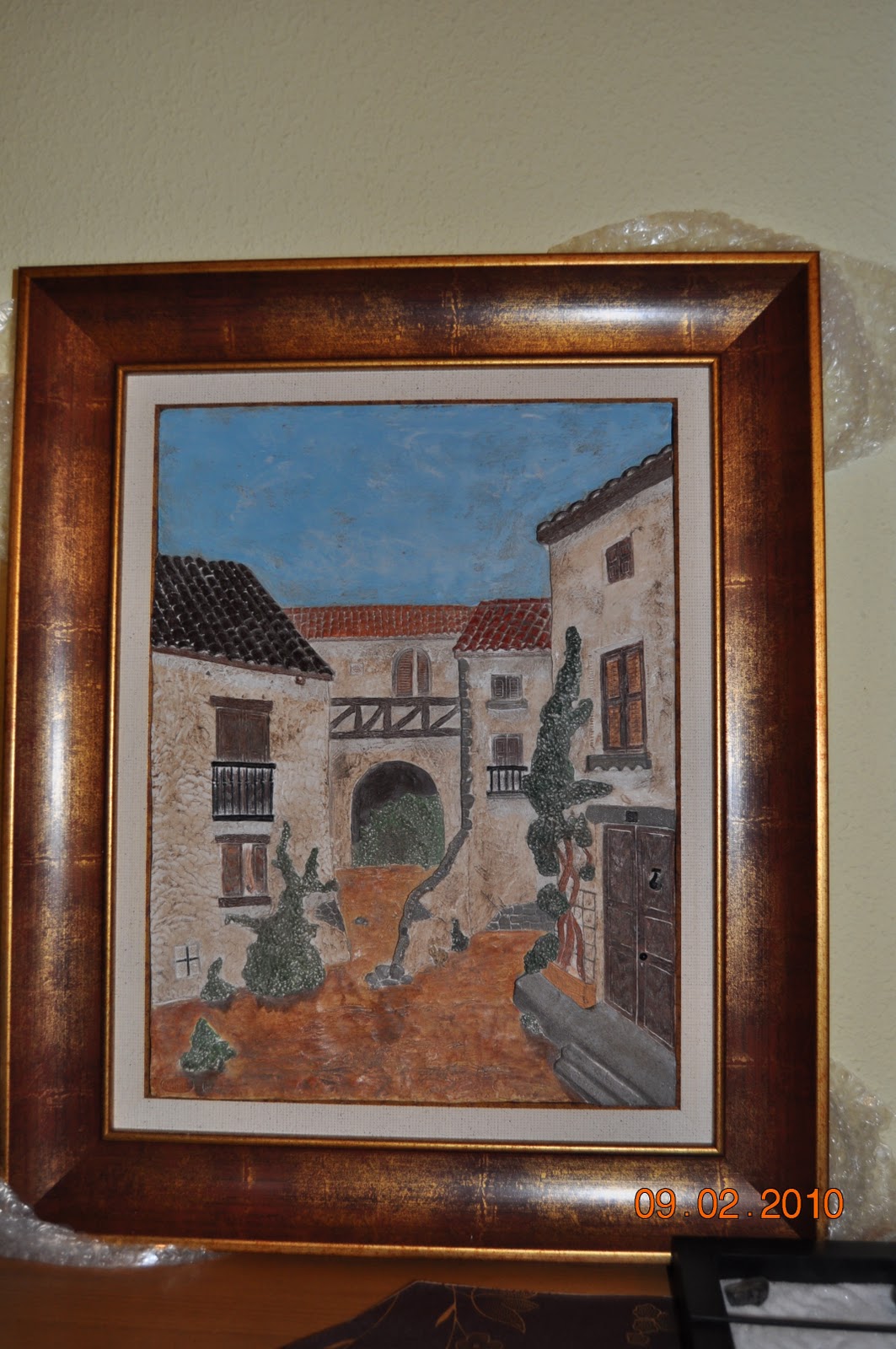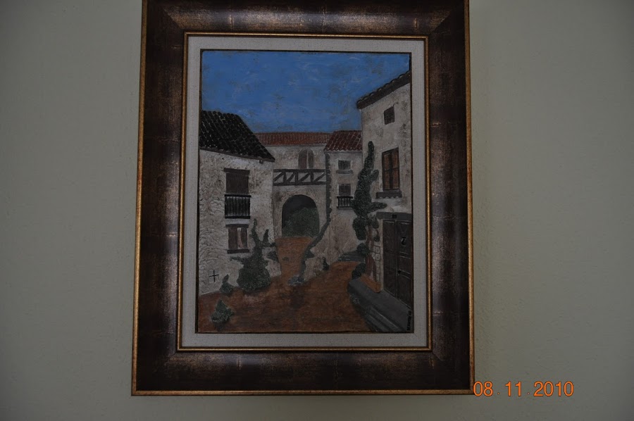 Da muy buen resultado decorar un cuadro en relieve. Esto es lo que yo conseguí con dos calles de pueblos.