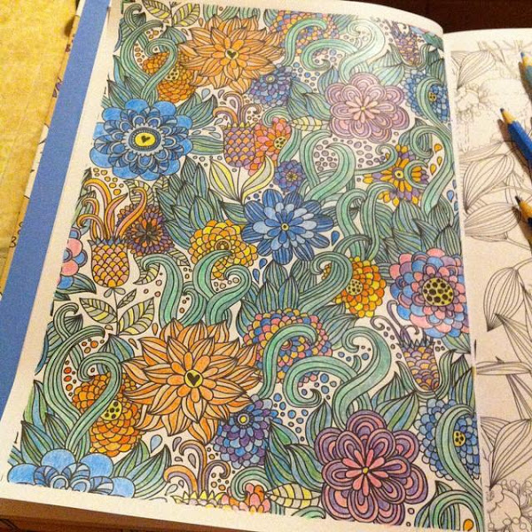 Lo vi, me encantó, y decidí que tenía que tenerlo. He dejado la libreta azul un poco abandonada, por falta de inspiración. Pero como aquí ya están los dibujos hechos y solo hay que colorear, me resulta muy divertido. Os muestro mi primera lámina.