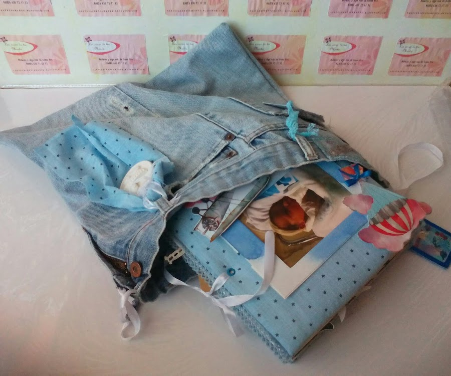 Bolsa donde guardar el álbum, me inspiré en la maleta estilo vintage. Me pareció una forma muy original de conservar y presentar este trabajo.