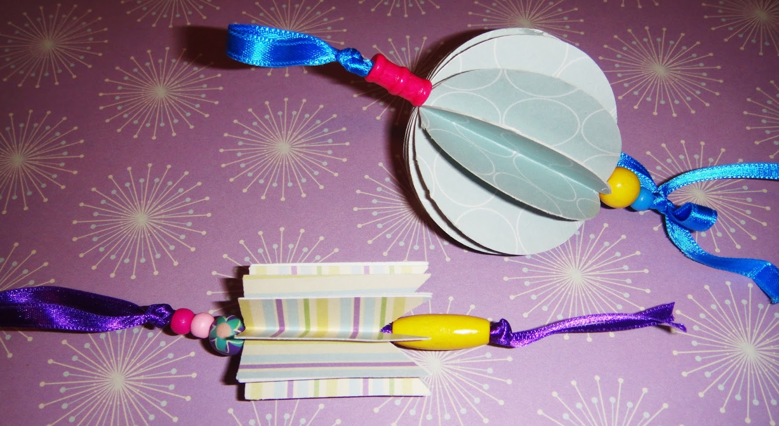 Si sois más atrevidas, podéis usar otras formas que no sean círculos. Este otro adorno lo he hecho con 8 banderines de cartulina, alternando rayas horizontales y verticales.