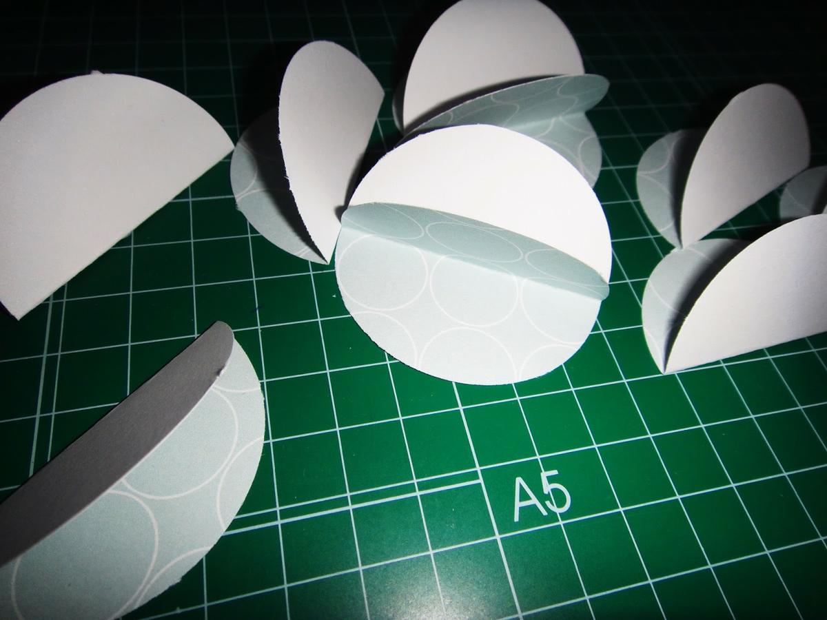 La técnica a partir de aquí es igual que la que vimos en el anterior post: Doblamos los círculos por la mitad, con el estampado hacia adentro (si lo tiene).