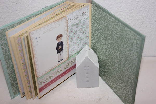 R. quería tres álbumes, En tamaño pequeño, ya sabéis que hago dos tamaños diferentes, uno de comunión, armario, para niña, de comunión, con encuadernación de espina para niño, y encuadernación japonesa para bebé.Debían ser muy genéricos, sin personalizar.
