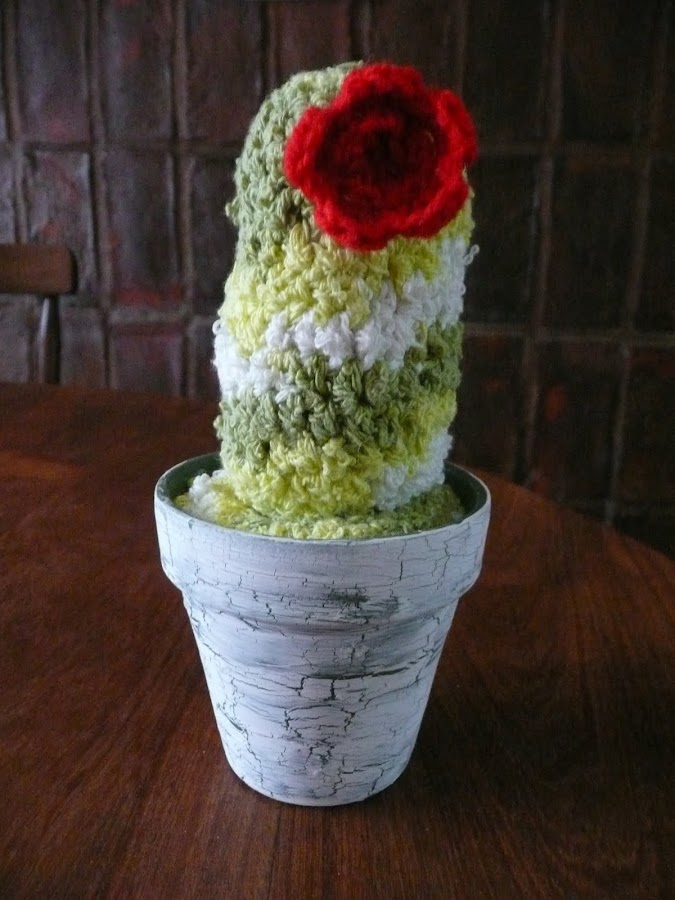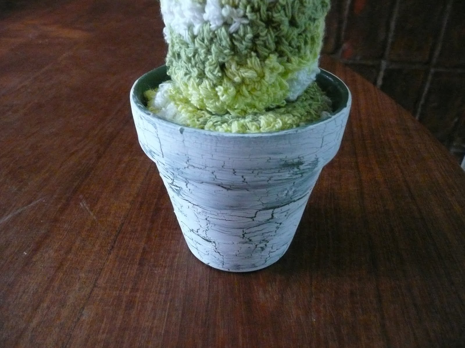 Y por último un cactus, A la maceta le hice craquelado, técnica que tengo que seguir practicando porque no me convence como me queda