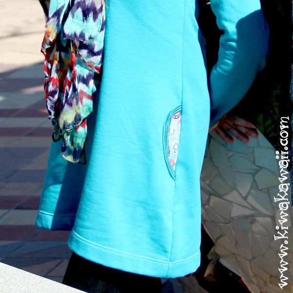 Mi versión, en sudadera perchada, con los bolsillos en tela plana tipo patchwork para contrastar sutilmente.