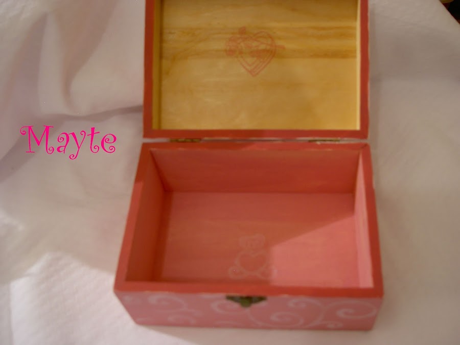 seguimos con otra cajita envejecida decorada con sellos de puntillas en su interior sellos con jaula y pajarillos y un corazón esta es de princesa aunque el vestido se vera naranja en rosita.....con su barita..su corona..sus zapatillas y su librito de baile lunares en su lateral y en su inerior aunque no se aprecie decorado con sellos una cajita angelical jajja lleva departamentos con cajon ...