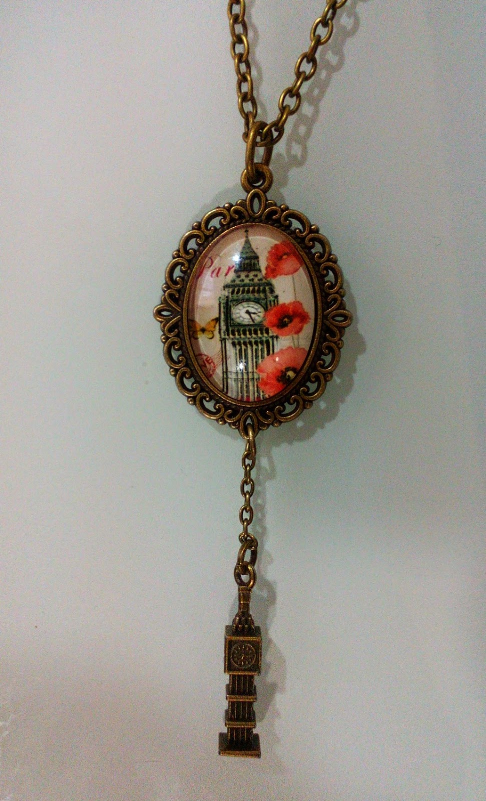Y para terminar, he probado con otra ciudad que no fuera París, y he pensando en Londres. Este camafeo lleva una imagen y un colgante del Big Ben.