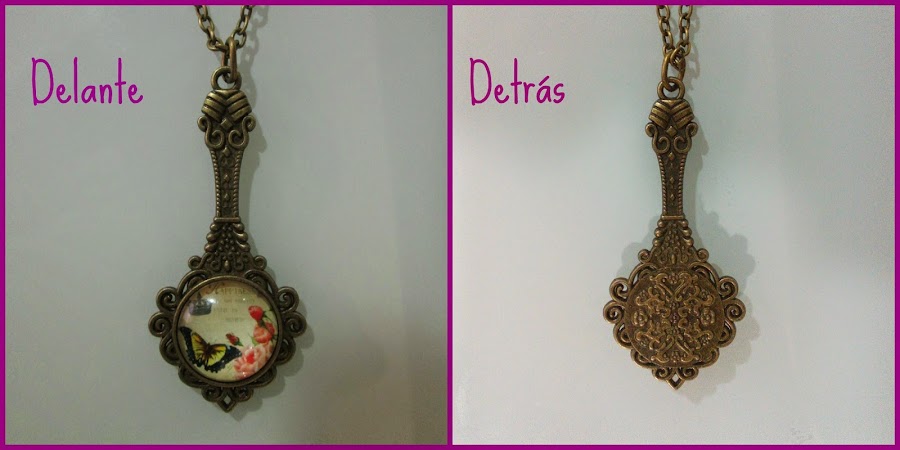 Este camafeo tiene una forma muy original, lleva la imagen de una mariposa, y por detrás también es muy bonito.