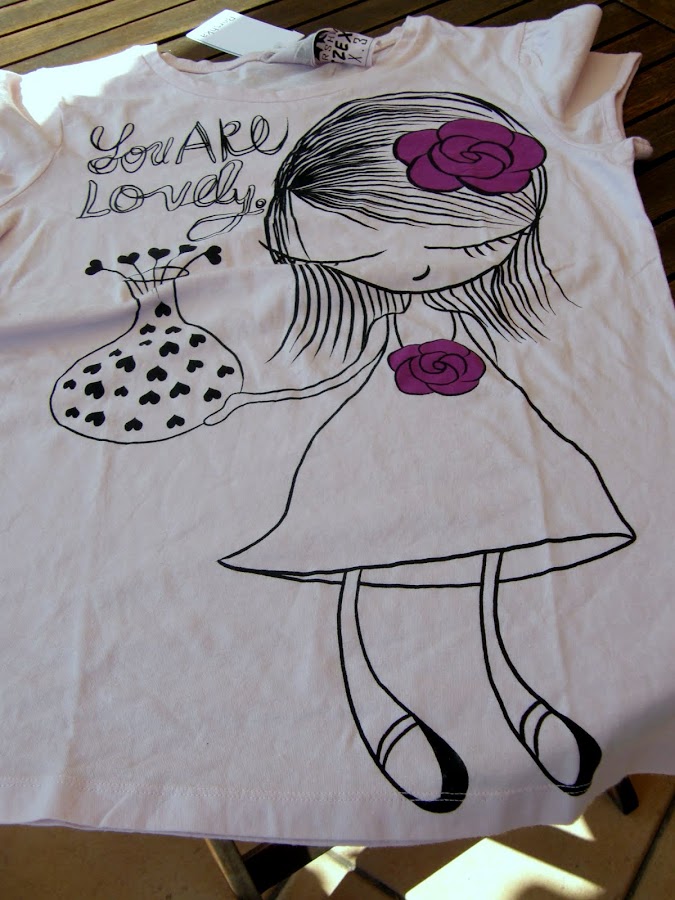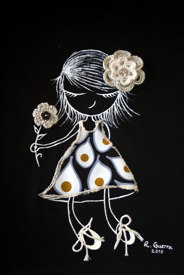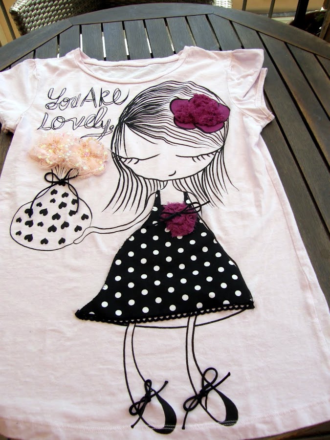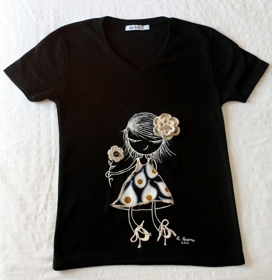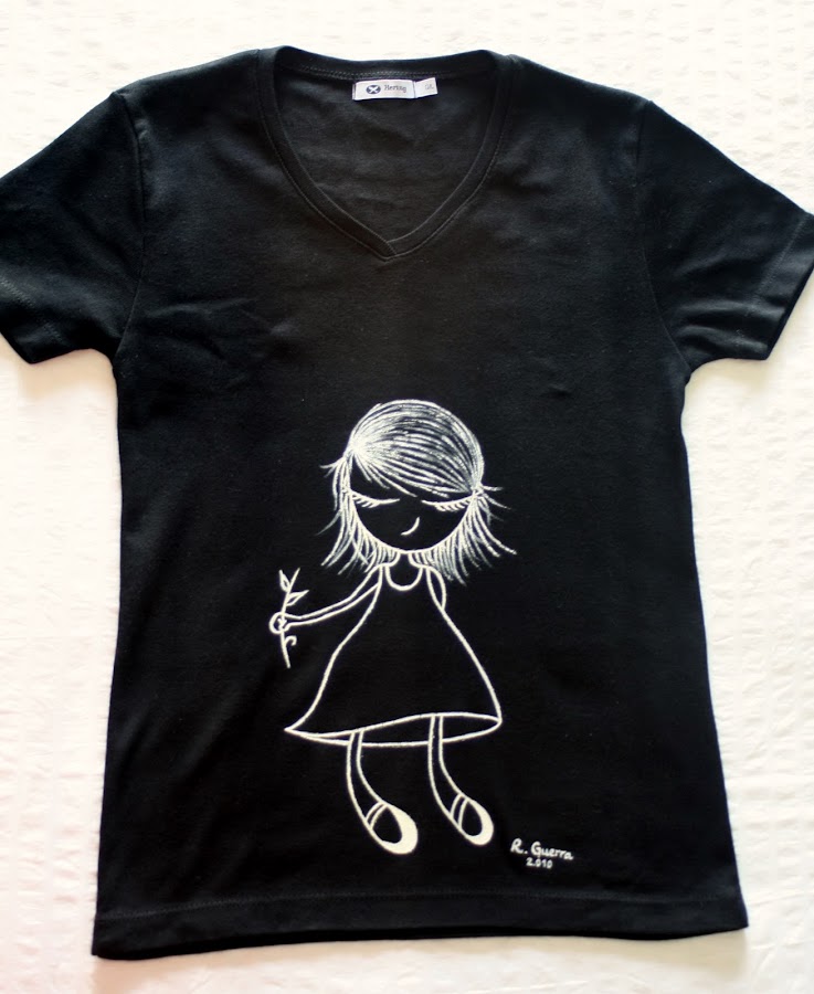 Como en la anterior entrada, el blog de Mercedes, ha sido mi fuente de inspiración. En una de las entradas de su blog, explicaba cómo había tuneado una camiseta que se había comprado. Y me gustó tanto el resultado, que decidí hacer una igual (bueno, parecida...).
