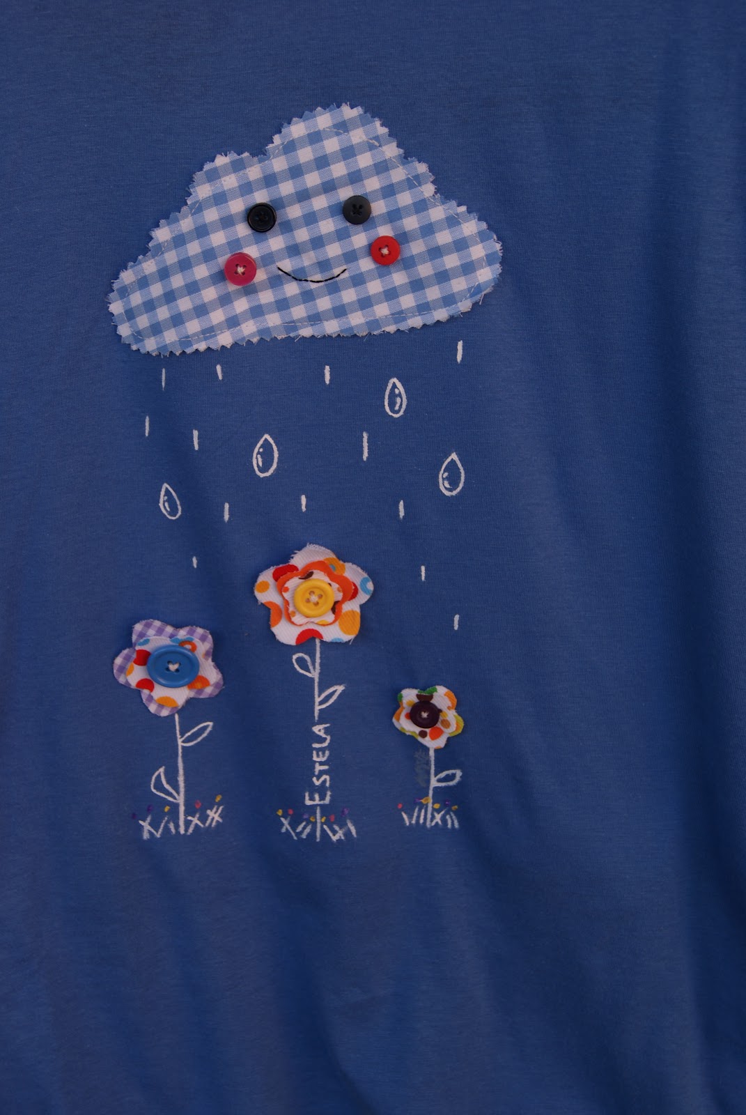Y no dejo de lado mis diseños de camisetas... Esta rosa simulando collares para Inés que es muy presumida Y esta con aplicaciones, son las manos de mi hija. Esta camiseta es para ella, pero tambien he hecho una igual para mi y otra para su padre...