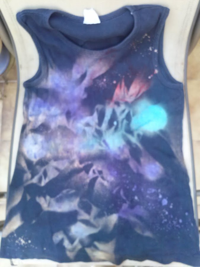 Es tan sencillo como arrugar la camiseta y echar la lejía con el spray (poco a poco hasta que nos quede como deseemos).