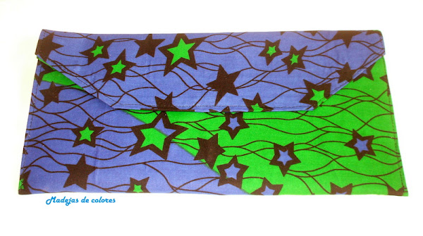 Esta es preciosa en mano, fondo es verde y azulina, aunque en la foto no lo parezca, con estrellas verdes y negras.