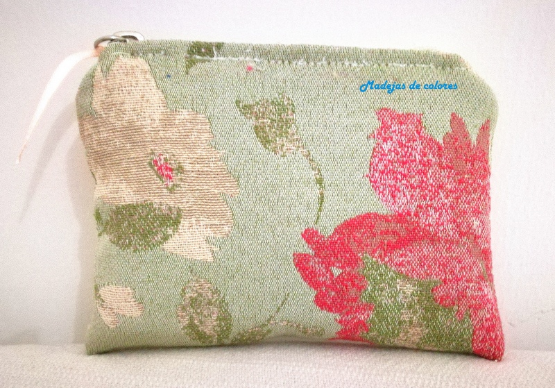 Y por último, monedero a juego con cartera anterior. Le puse cinta rosa para tirar de la cremallera.