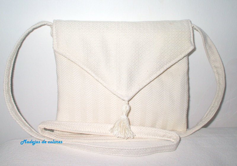 Esta en concreto me la pidieron por carnavales, para llevar a la isla de la Palma, a la fiesta de los indianos, con asa larga para poder bailar cómoda. Si no conocen su origen, picad en enlace y sabréis el porque de ser blanco.