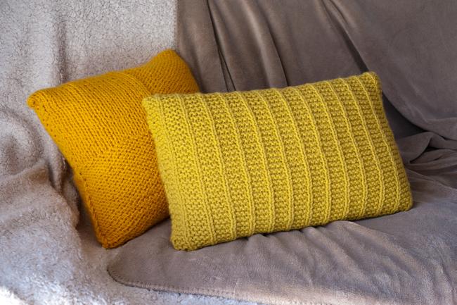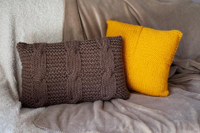 Hoy me vais a permitir un poquito de autobombo y os voy a enseñar los últimos cojines que hemos tejido a dos agujas. Son súper esponjosos y calentitos, y a mi personalmente los rectangulares me encantan!