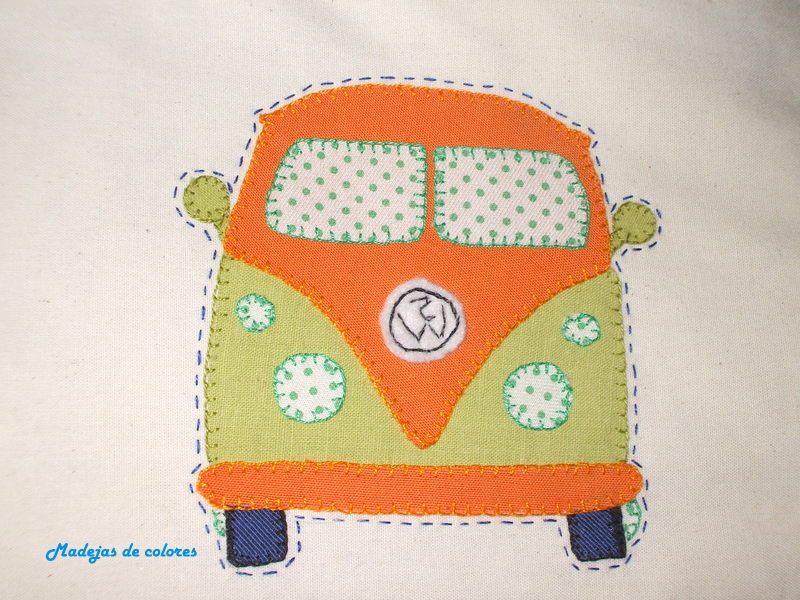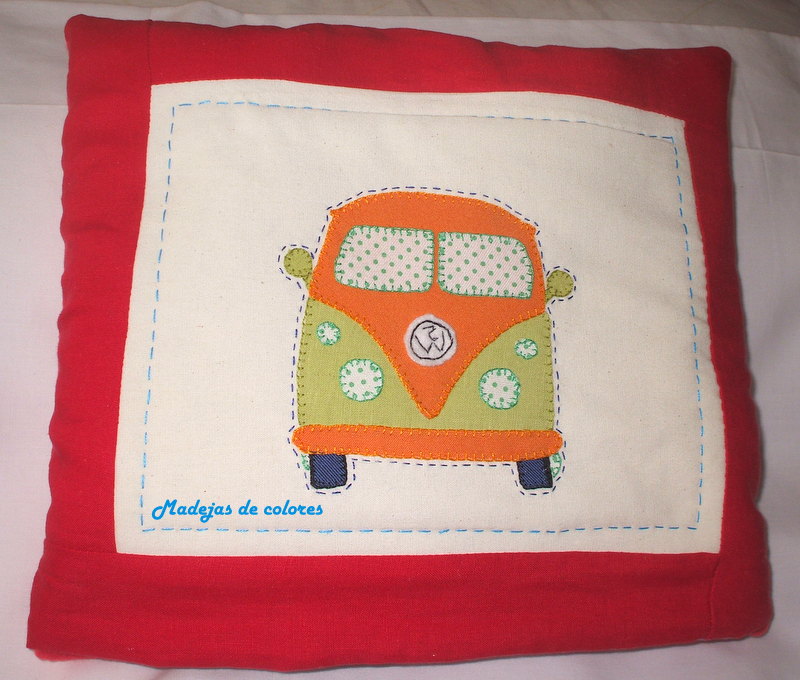 Para mi padre, hice la famosa furgoneta Volkswagen, me pareció más adecuada para un hombre. La enmarqué en rojo.