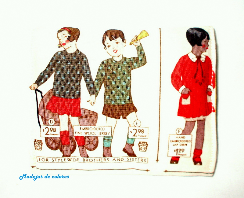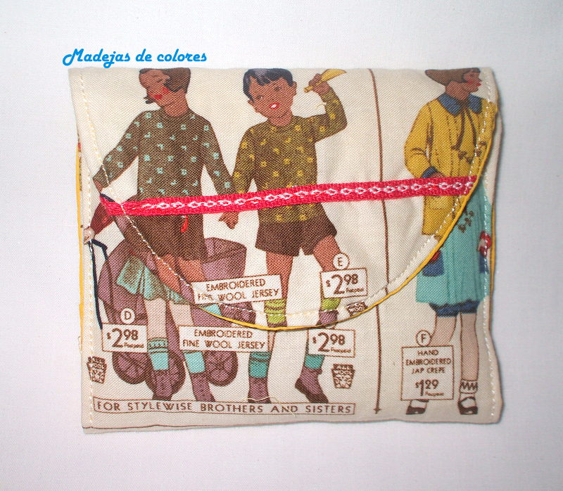 Esta otra la hice con una tela vintage de niños. Como adorno una cinta roja.