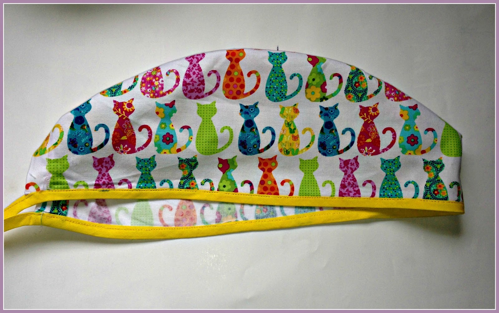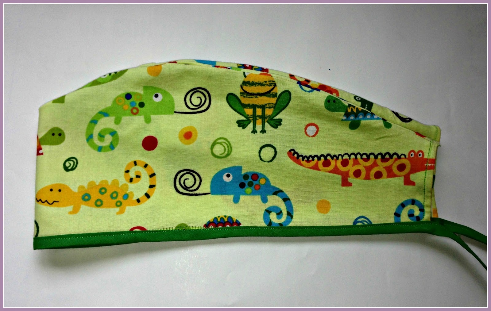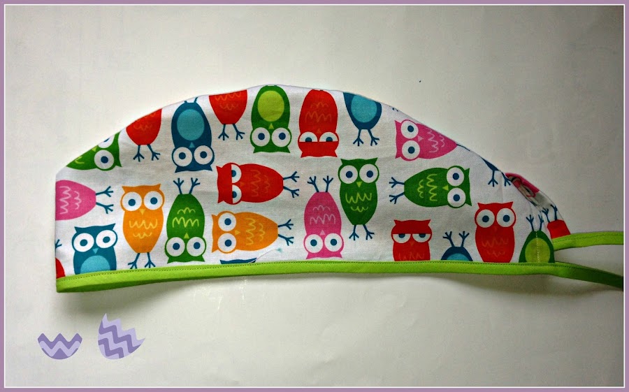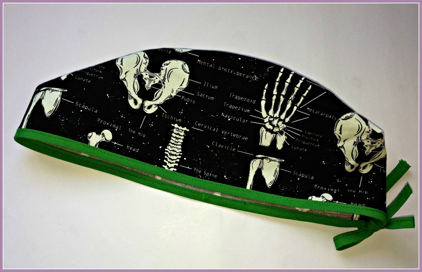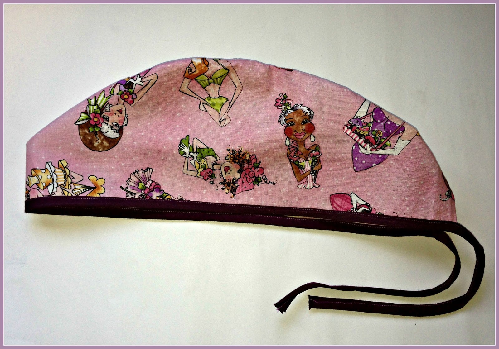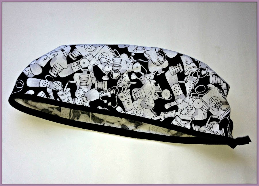 Y estos son los gorros hechos con ellas. Por supuesto, si estáis interesados en algún gorro de quirófano (o en alguna otra cosa que veáis) están a la venta en mi tienda de Artesanum.