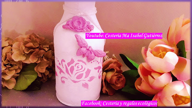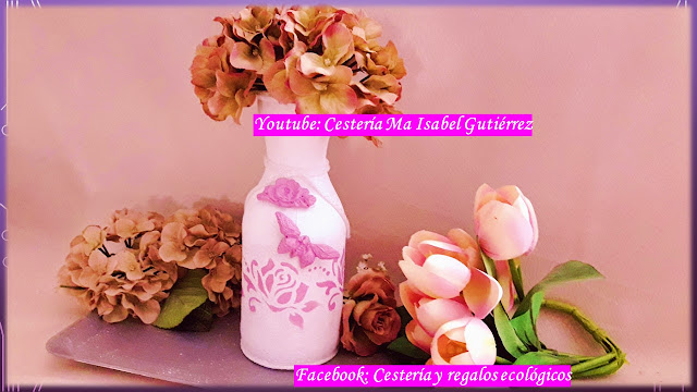 Una botella de vidrio la convertí en un bello jarrón florero, que también podemos usar como centro de mesa en celebraciones de todo tipo...