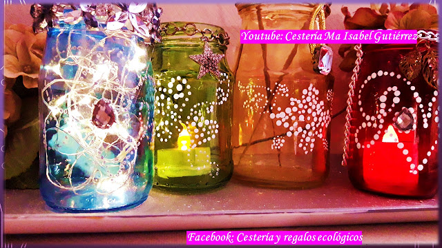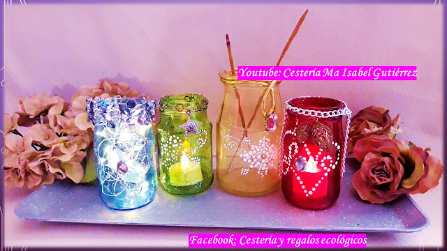 Así que, amigas, no vuelvan a tirar ningún frasco de vidrio. Ya antes les compartí otras ideas, hoy son estas y seguiremos ideando mas maneras de decorarlos y volverlos útiles...