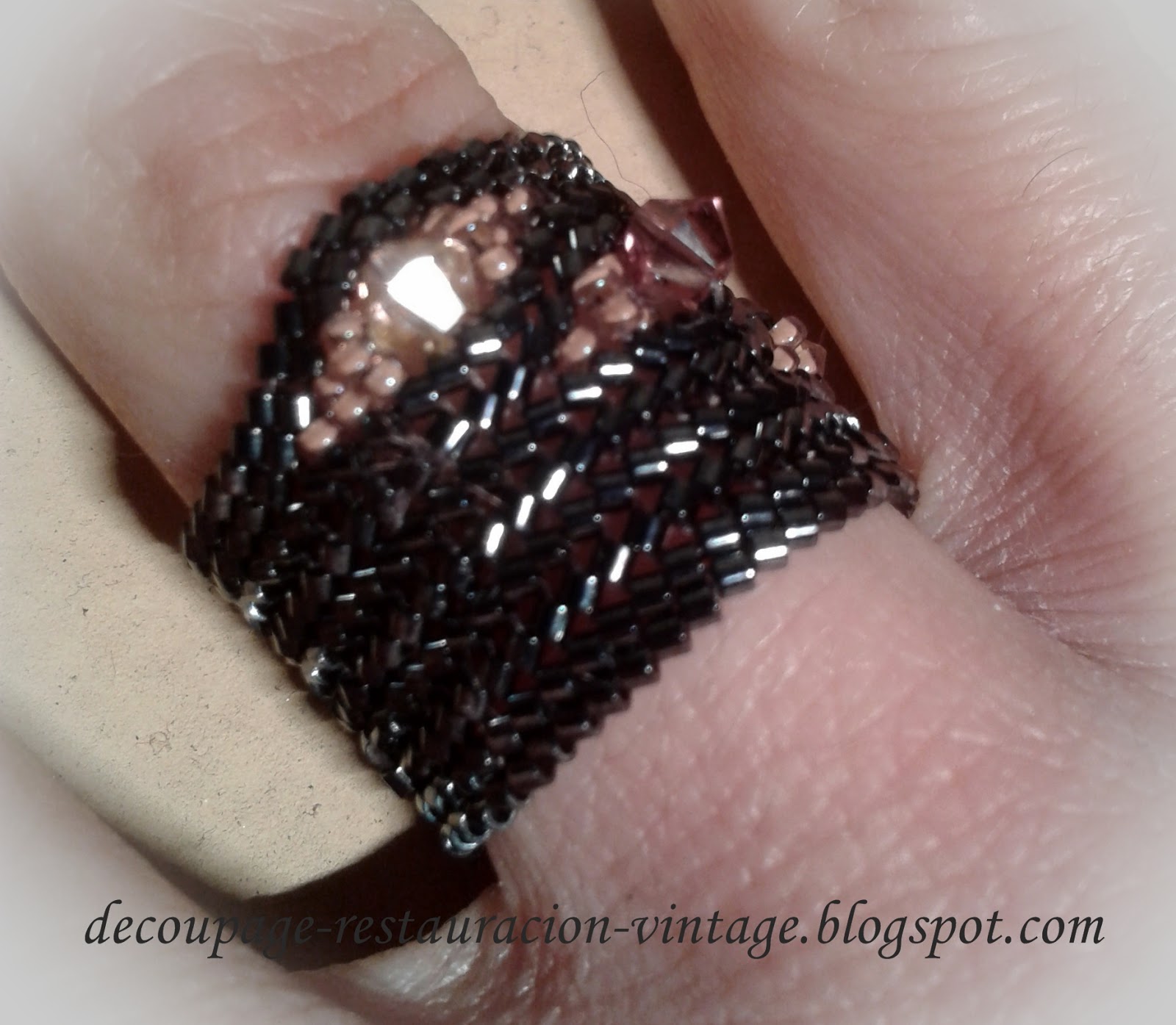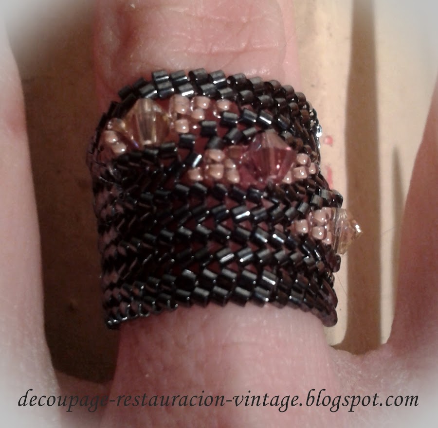 El anillo está hecho con un punto que se llama herringbone. Es una modificación de un anillo que se llama serpentine.