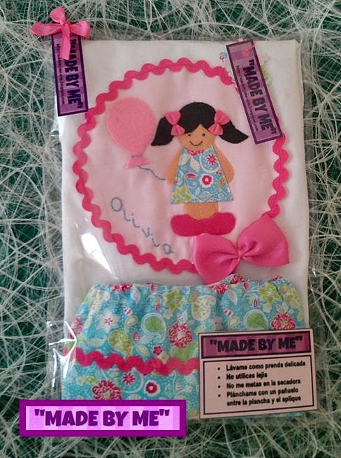 Bueno...seguimos con los conjuntos de cubrepañales y camisetas de muñequitas de "madebyme"...la verdad es que son super alegres, y encima, personalizadas con el nombre de los peques.