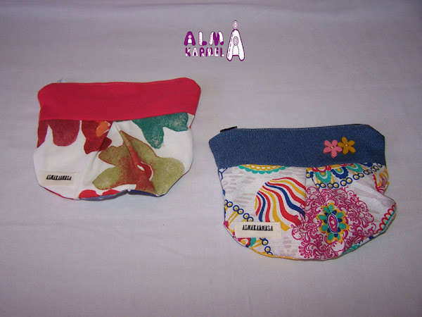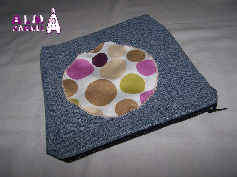 Y el de abajo, en tela vaquera y con una aplicación de una tela con lunares. En esta ocasión con un poco de fondo en la base.