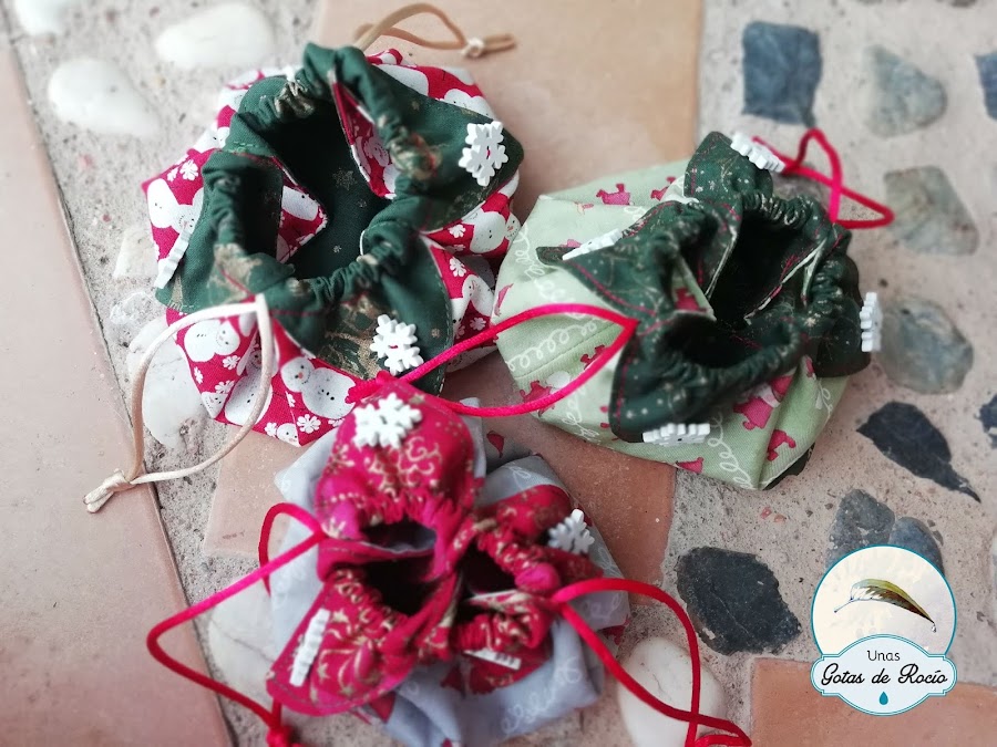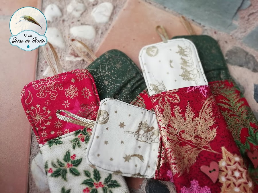 Os quirero enseñar los regalitos que me pidió Pilar que le hiciera para obsequiar a sus seres queridos. Son detalles con los que ella y su hija Bego disfrutan entregando en estos días. Siempre me piden telas navideñas con las que celebrar estas fechas tan importantes para ellas.