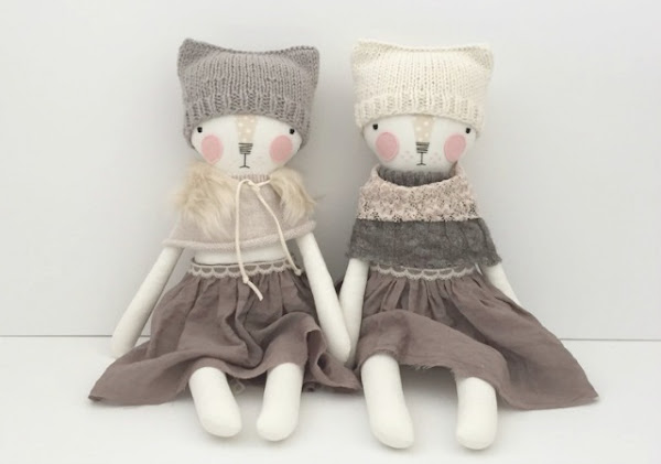Para la realización de estos muñecos de medio metro, su creadora utiliza telas en colores tostados y blancos, que combina perfectamente con grises, rosas y marrones en sus versiones más suaves. Las prendas por su parte, están hechas con una amplia gama de tejidos, desde tules, hilos y encajes, hasta lanas, fieltro o piel, lo que otorga a cada muñeco, un aspecto único y exclusivo. Esta variedad permite a su creadora realizar, siempre a mano, piezas con tanto estilo que yo misma me pondría si hubiera de mi talla ;)