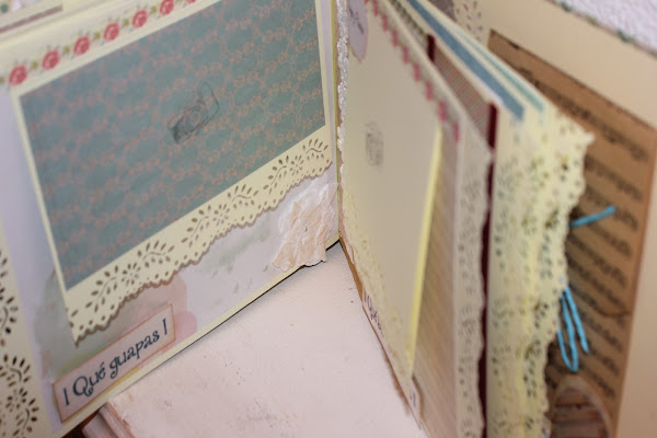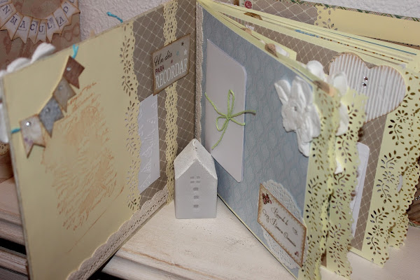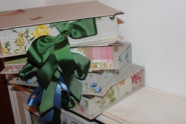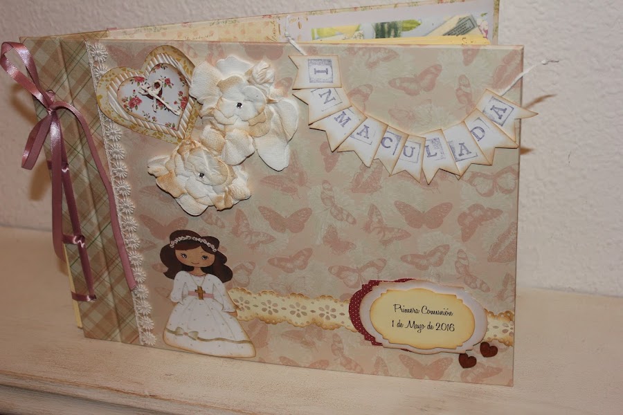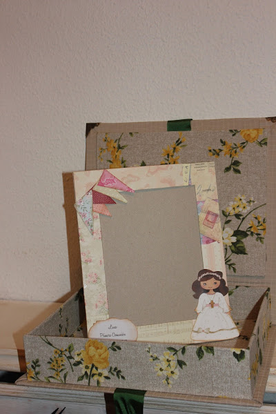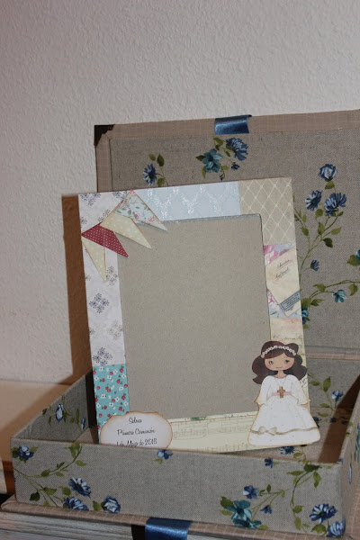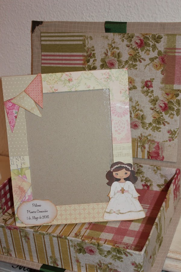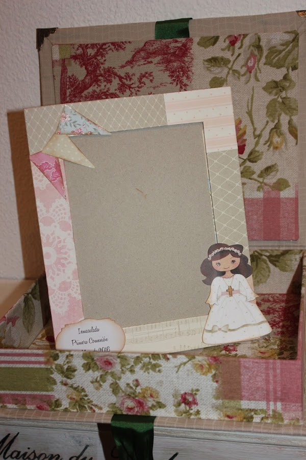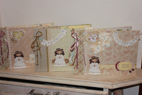Para Córdoba salió un paquete bien grande con unos cuantos regalos de comunión: Tres álbumes en formato encuadernación japonesa, tamaño 23 x 31, con 10 hojas tamaño folio y mucho desplegable, cuatro cajas libro forradas en tela y , en su interior, cuatro marcos de fotos.