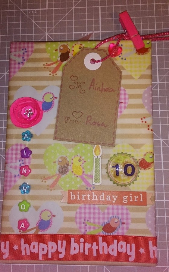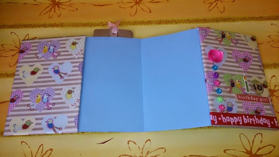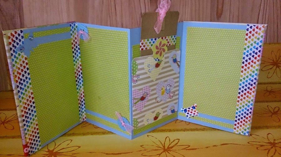 Y para Ainhoa, la mejor amiga de mi hija, en su décimo cumpleaños le realicé un miniálbum tipo acordeón con papeles, washitapes y detallitos muy infantiles.Quedó muy colorido y alegre, tal y como es Ainhoa, un encanto de niña, puro nervio y dulzura a la vez. La verdad es que le encantó porque no se esperaba un regalo así y seguro que pronto lo llenó con 3 fotografías suyas.