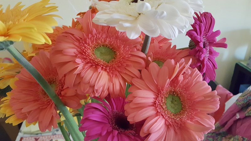A parte, gerberas de LHort de lAvi, para que cada niño entrara a la clase con una flor para cada profesora. Superchulas!!!