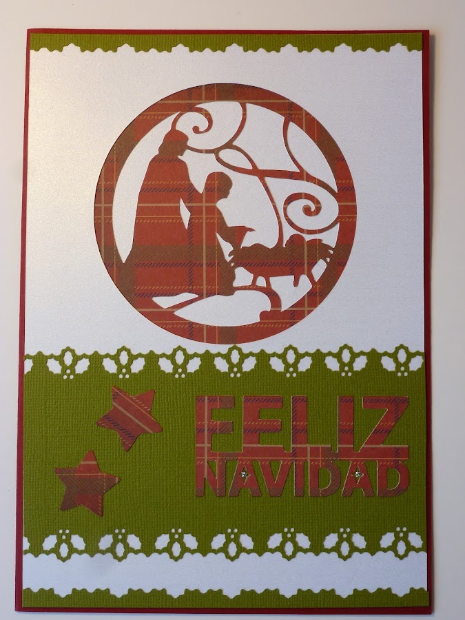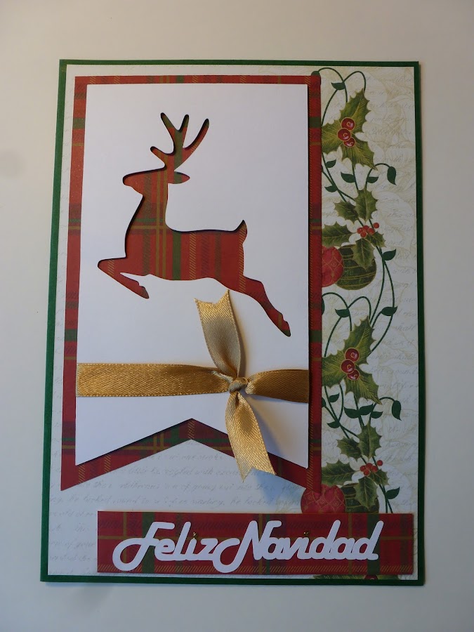 Hola, hola. Vamos a seguir con el desfile de tarjeas de Navidad, que se nos echa el tiempo encima. ¡Ya estamos en Diciembre! Éstas se podían llamar "Variaciones sobre el mismo tema". Demuestran cómo cambiando algunos elementos, se pueden hacer tarjetas distintas usando el mismo diseño central. Me encanta cómo queda el ciervo troquelado y vaciado, y que se vea el papel decorado por detrá ...