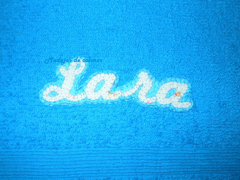 Y por último sobre toalla y fieltro turquesa, la misma tela delicada de la primera.