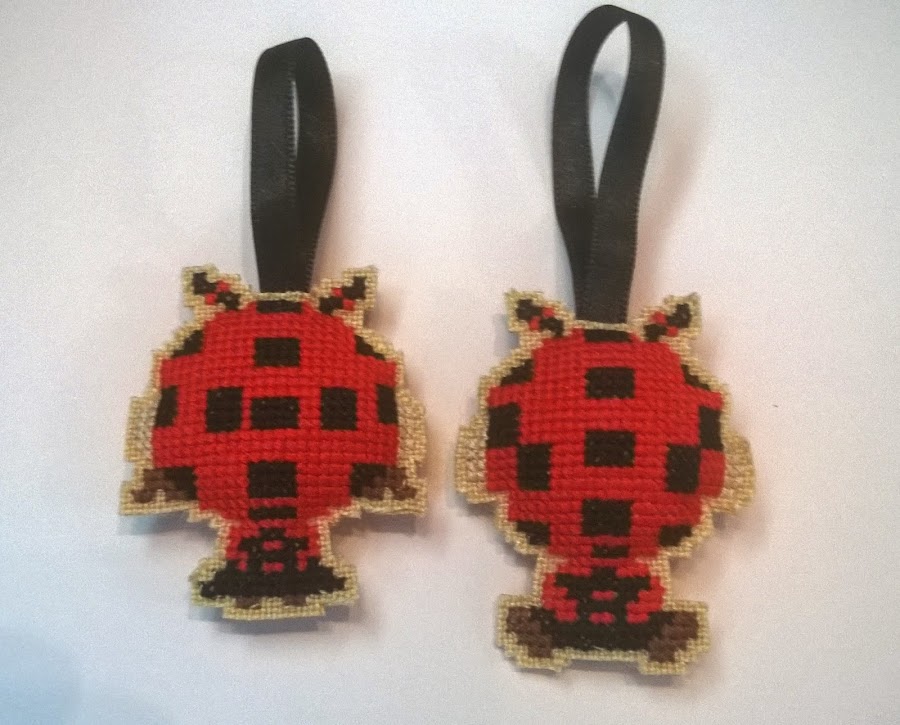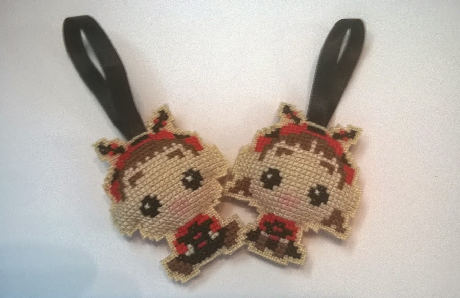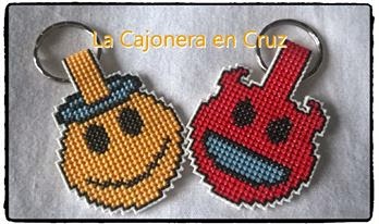 ¿Angél o demonio? Estos están realizados en plastic canvas, que no es mi material preferido, aunque hay que reconocer que creo que es el ideal para llaveros.