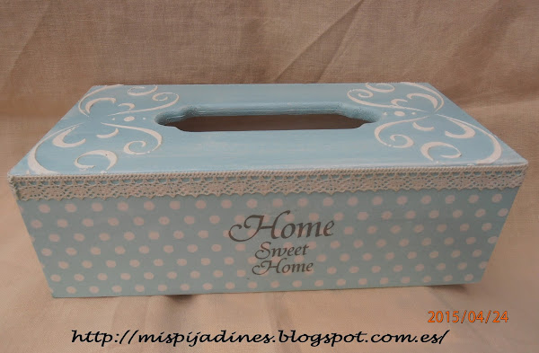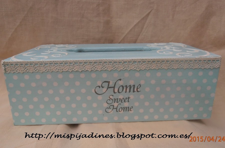 El color agua marina me encanta, en cuanto vi la servilleta de topitos(como dice mi nieta) supe que la pondría en este estuche