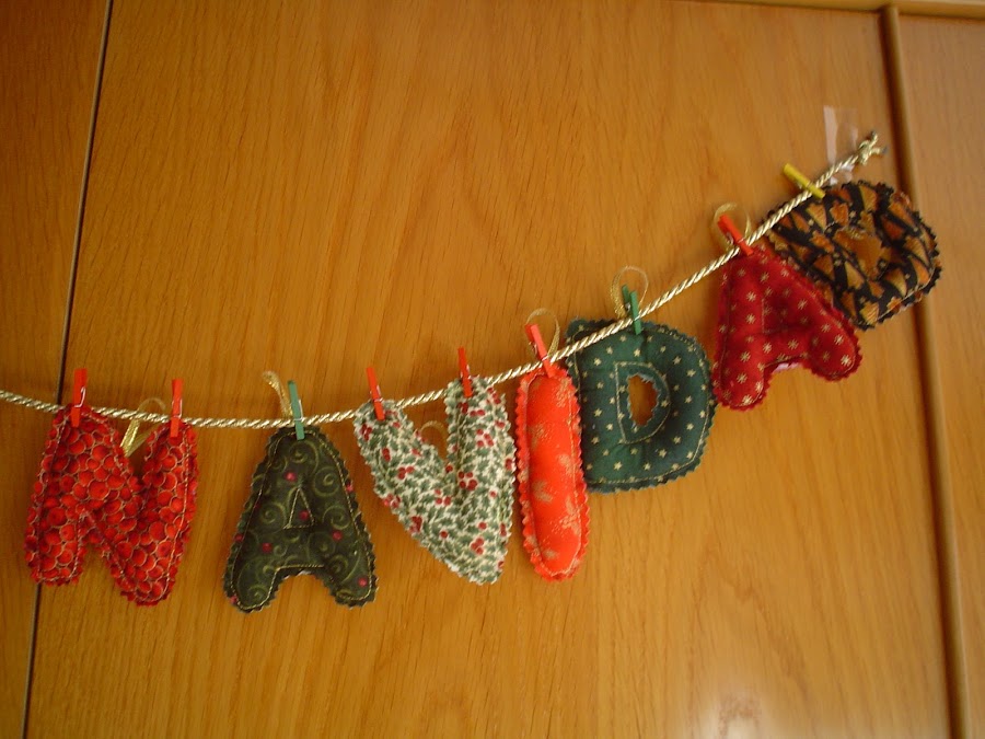 Tambien hice estas letras de feliz Navidad para colgar en el arbol o si se prefiere como guirnalda. Estan han viajado hasta Las Palmas de Gran Canaria.